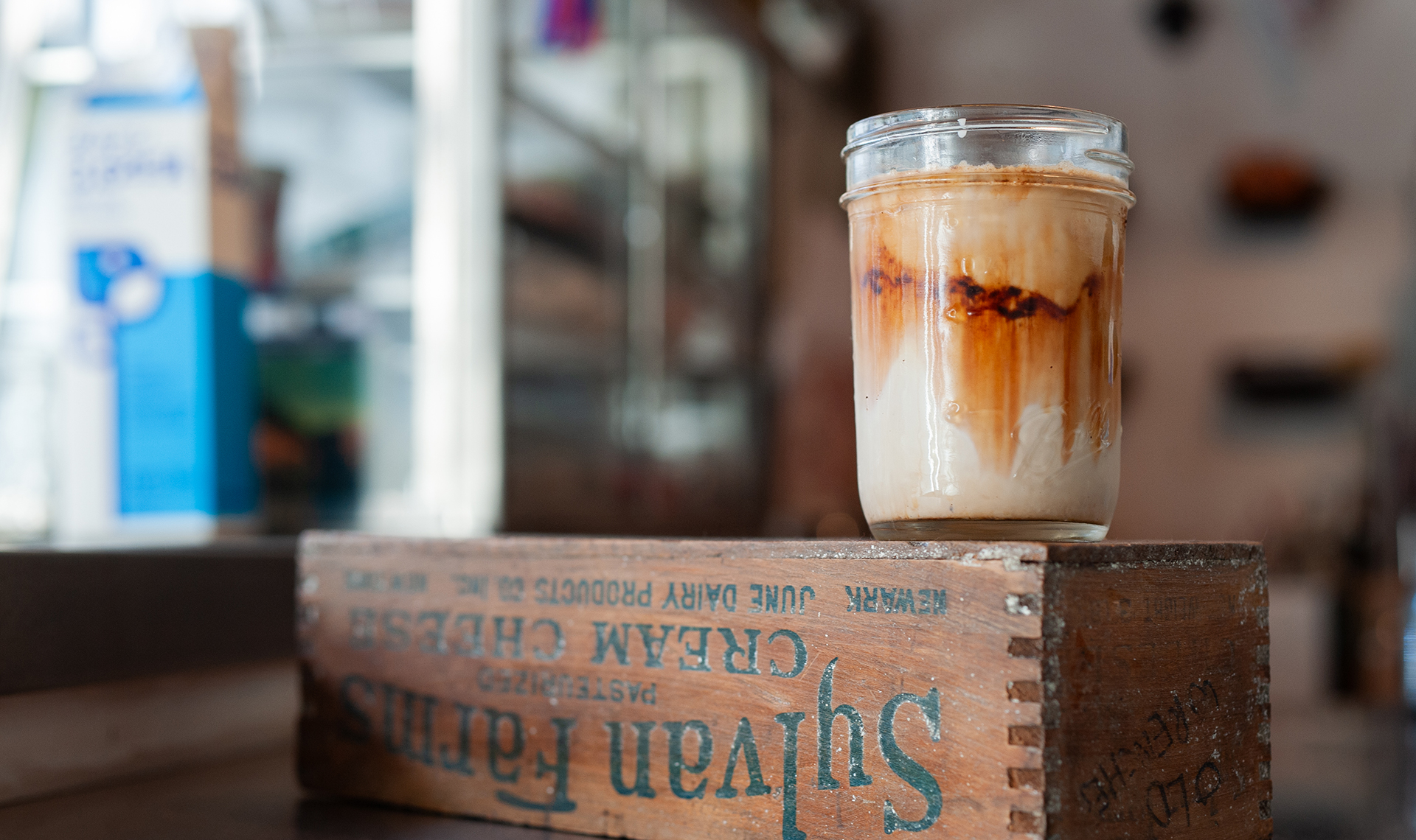 Flower Child is the basis for Katsuyuki Tanaka's original espresso, "Angel Stain, 2009” featuring two-layer espresso rings of cold milk without ice, followed by "Dirty, 2010," and
